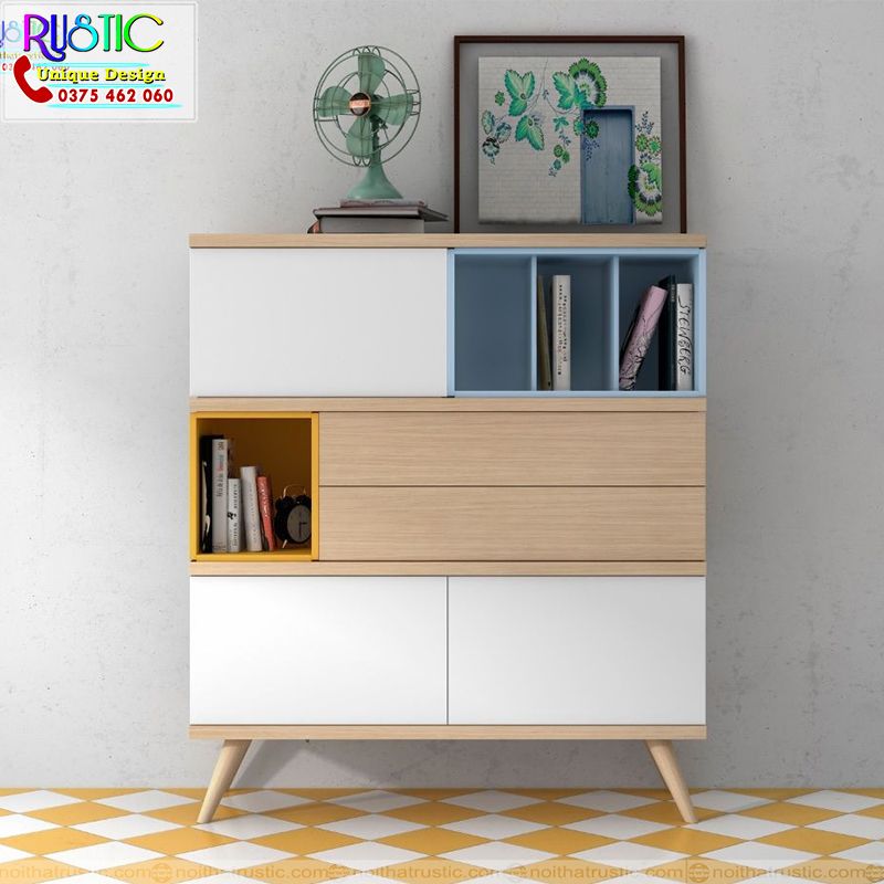 Cabinet chất liệu MDF Thái phủ melamin chống ẩm với phối màu thu hút. kích thước cao 110 rộng 80cm