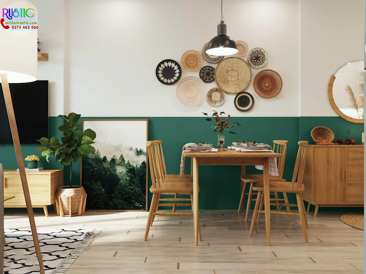 Phòng khách + Phòng ngủ Master: xanh lá + trắng + Vân gỗ tự nhiên