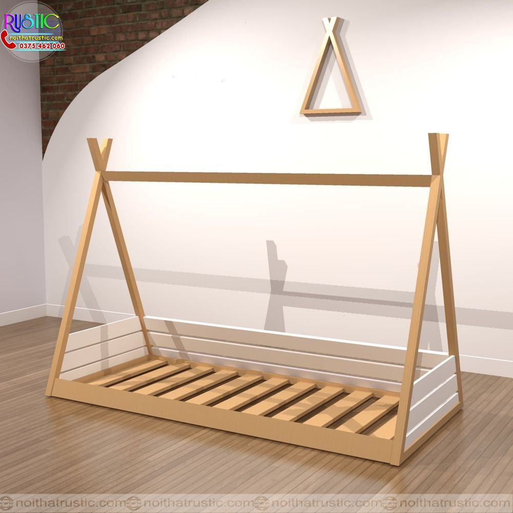 Mẫu giường đơn giúp bé vừa ngủ vừa chơi, bộ khung giường làm từ gỗ tự nhiên vững chắc có thể mắc thêm dây đèn trang trí hoặc treo đồ Decor.